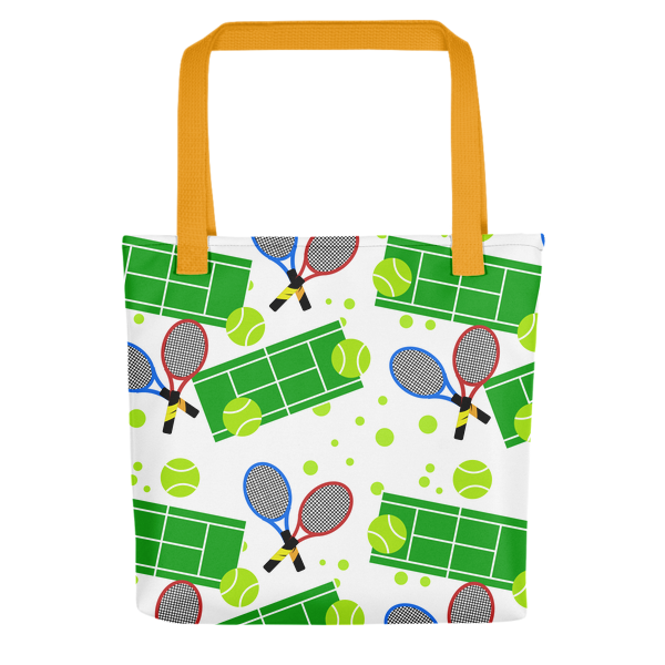 Tennis Match Tote bag $23.50 Description A spacious and trendy tote bag to help you carry around everything that matters. • 100% spun polyester fabric
