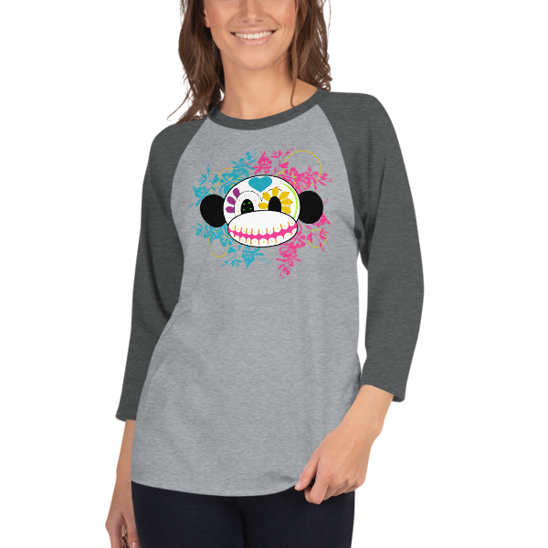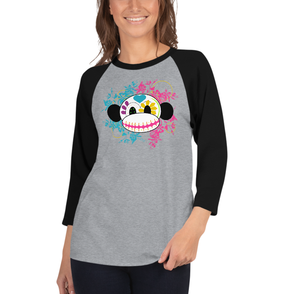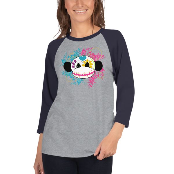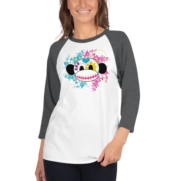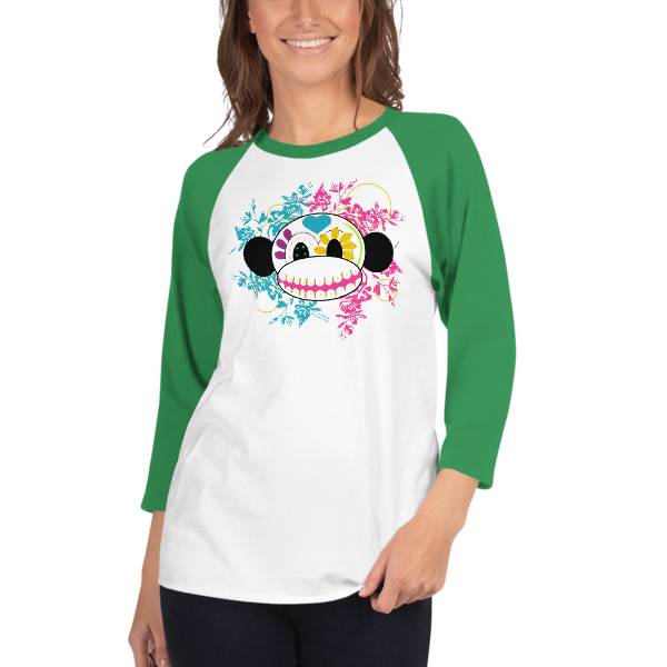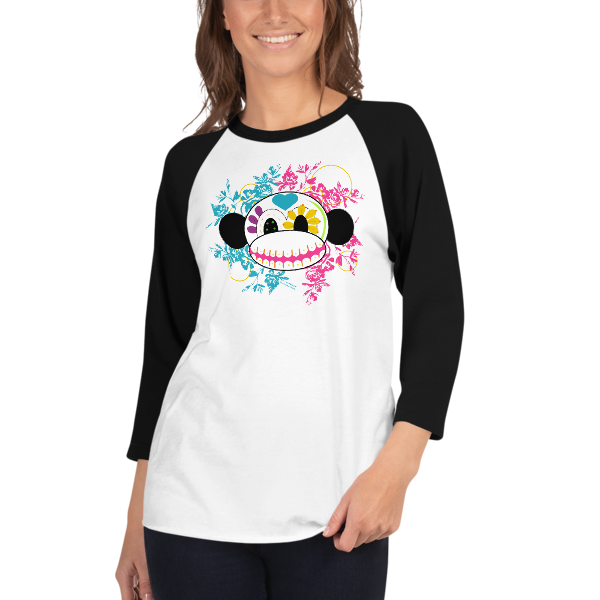 Sugar Skull Monkey 3/4 sleeve raglan shirt