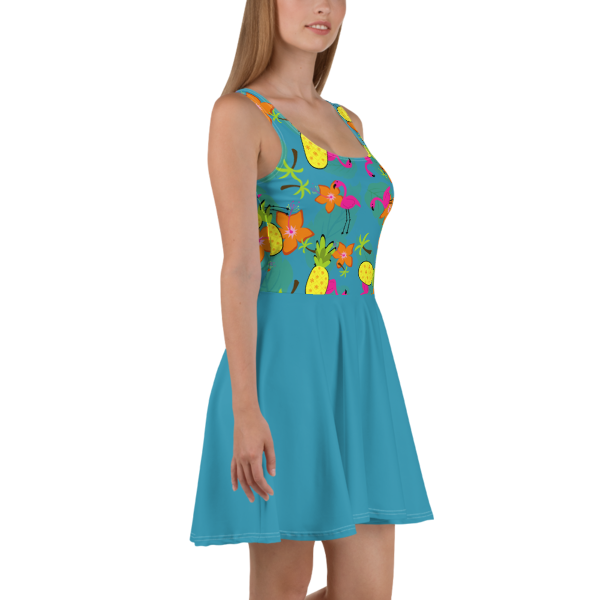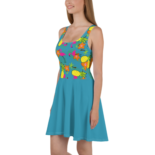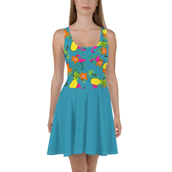 Flamingo Summer Skater Dress $50.50 Description Dress to impress with this sleeveless skater dress! The soft fabric and flared skirt give it an elegant twist that brings out the intricate design with a beautiful vibrancy. • 82% polyester, 18% spandex