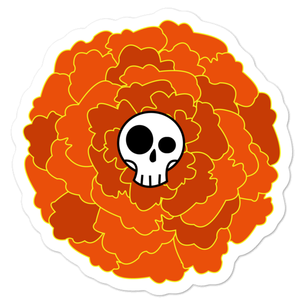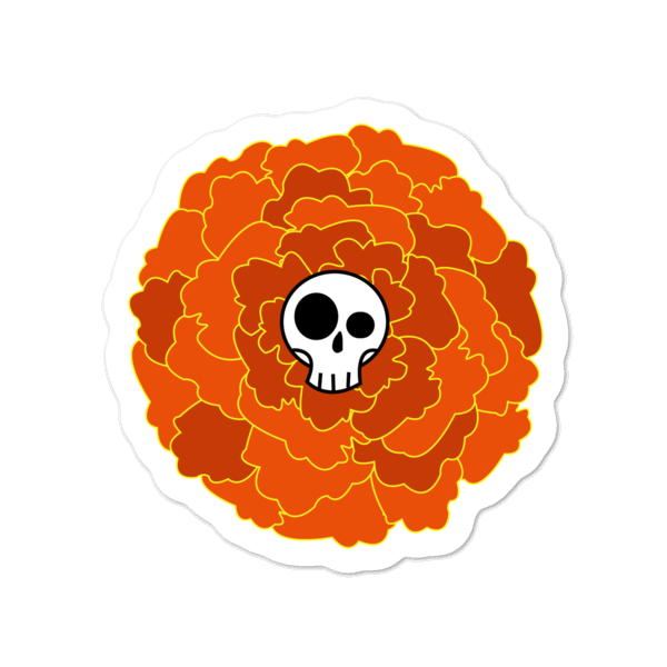 Marigold Skull Sticker $3.50 Description These stickers are printed on durable, high opacity adhesive vinyl which makes them perfect for regular use, as well as for covering other stickers or paint. The high-quality vinyl ensures there are no bubbles when applying the stickers, and the stickers can be used both indoors and outdoors. • High opacity film that’s impossible to see through