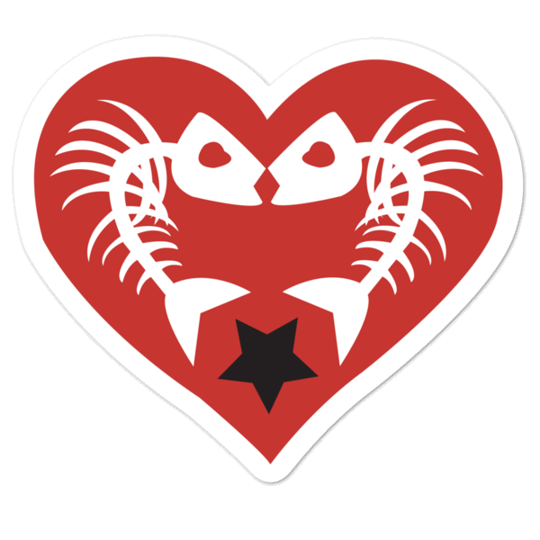 Fish Bone Heart Sticker (black star) $3.50 Description These stickers are printed on durable, high opacity adhesive vinyl which makes them perfect for regular use, as well as for covering other stickers or paint. The high-quality vinyl ensures there are no bubbles when applying the stickers, and the stickers can be used both indoors and outdoors. • High opacity film that’s impossible to see through