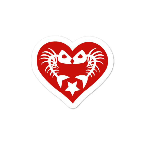 Fish Bone Heart Sticker (white star) $3.50 Description These stickers are printed on durable, high opacity adhesive vinyl which makes them perfect for regular use, as well as for covering other stickers or paint. The high-quality vinyl ensures there are no bubbles when applying the stickers, and the stickers can be used both indoors and outdoors. • High opacity film that’s impossible to see through