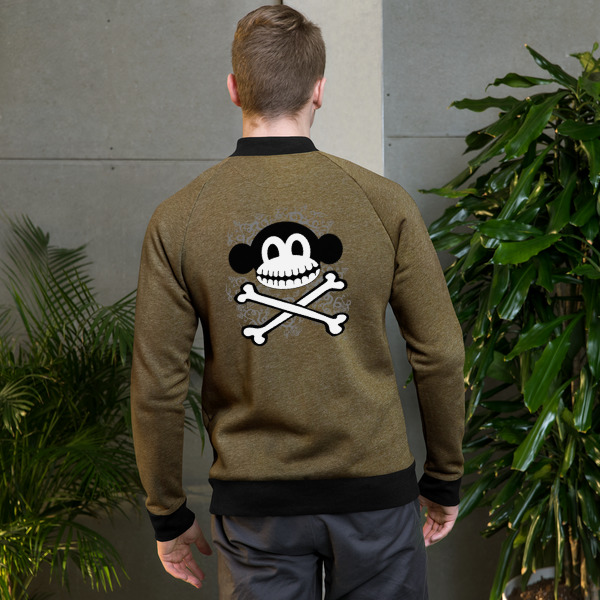 Skeleton Monkey Bones Bomber Jacket $60.00 Description Combining durability and style, this bomber jacket is a great addition to any wardrobe. It’s a real statement piece that makes even the simplest outfit look fashionable. • 60% cotton, 40% polyester fleece